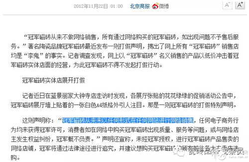 不难看出,因配送、服务,以及与传统渠道的利益分配问题无法妥善解决,传统渠道、传统经销商对电商持观望态度,瓷砖企业的电商之路走得异常艰难。
