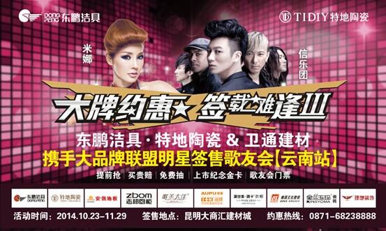 这股超强冷空气名为“大牌约惠·签载难逢Ⅲ”,其强大的威力来源于云南建材行业巨头——大品牌联盟,11月29日携手台湾摇滚天团信乐团及韩国热舞天后米娜强势登陆云南海埂会堂,为广大东鹏洁具、安信地板、志邦厨柜、德国艾仕壁纸、唯美大洋布艺、温世家·洒卡衣柜、奥普浴顶、理想装饰等联盟品牌消费者献上摇滚歌曲及火辣热舞。