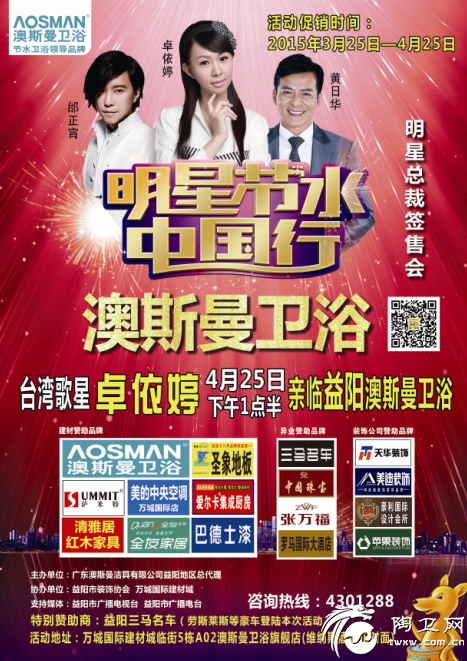 卓依婷的加入让澳斯曼的“明星节水中国行”广受关注,同时,澳斯曼为益阳市民带来的五重豪礼也让人深受期待,卓依婷见面会门票、幸运礼包、节水卫浴、钻石女戒、百万红包、明星特权等,均是澳斯曼卫浴为益阳市民量身定制的。