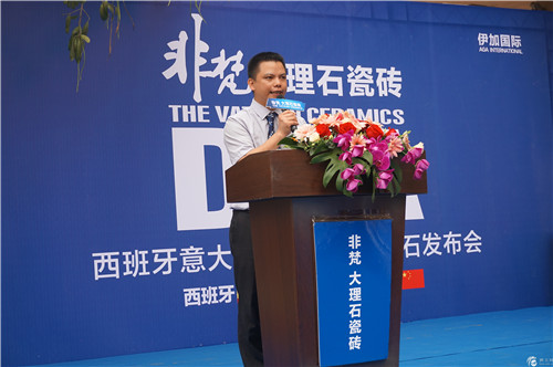 伊加国际总经理杨明通在活动现场发言指出,伊加国际与西班牙魅族瓷砖、MAPISA瓷砖、AB瓷砖有着亲密的合作关系,一直以来非常重视跟西班牙顶级瓷砖的合作。魅族瓷砖、MAPISA瓷砖亚太总裁的大驾光临,为伊加国际2015春季DNA新品发布会增添了不少色彩,同时他们的到来让我们更有信心将非梵大理石瓷砖做的更好。西班牙陶瓷,作为世界顶级陶瓷的代名词之一,他们的大力支持是我们强大的后盾,我们坚信未来的步伐一定会越走越稳健。