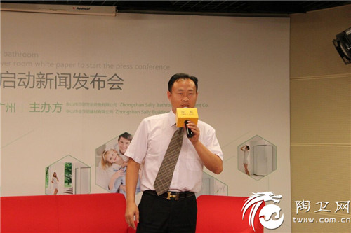 陶卫网讯 记者庞杏华报道 5月12日,金莎丽卫浴举行淋浴房白皮书启动仪式。中国陶瓷工业协会营销分会副秘书长、陶瓷资讯报社长、陶卫网总编辑喻镇荣老师致辞,中国建筑卫生陶瓷协会副秘书长、华南理工大学教授尹虹博士,中山市商务局领导李科 ,仁相助营销顾问机构创始人韩锋老师,中山市莎丽卫浴设备有限公司(金莎丽卫浴)总经理胡天齐,搜狐焦点家居高级经理郑哲女士以及20多家媒体代表出席了本次会议。
