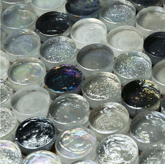 晶莹透亮的琉璃质地,8mm厚度质感,独特的圆圈纹路,个别琉璃颗粒底部冷喷闪粉,俏皮的圆形造型,便是这款《俏皮圆珠》的可爱之处,浅灰色调的素雅被圆形颗粒包裹着,如一颗颗饱满可爱的荔枝,铺贴在家里,素雅的氛围中带点可爱感。