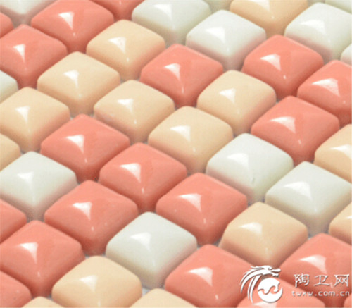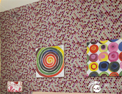 白色搪瓷混搭粉色搪瓷而成《粉色童年》,独特的鼓面,显得每一颗颗粒都那么圆润可爱,满铺在墙上或作为腰线,充满甜蜜的粉色浪漫情调。