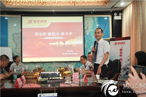 7月18日下午,金舵瓷砖以“新金舵、新起点、新未来”为主题的媒体座谈会在金舵领航馆召开。金舵集团总裁助理张润生、金舵瓷砖总经理李丹锋、金舵瓷砖市场部经理曹裕勇出席本次发布会。经历上半年的调整规划,金舵瓷砖正处在发展的关键点上,为了让大众更深入了解金舵瓷砖发展规划,金舵召开本次会议,与媒体人士交流互动,分享解读发展大计。