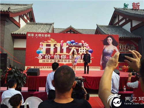9月26日,新濠大理石瓷砖主办的“价格你,我愿意”的大型开业庆典活动在曹县新濠大理石瓷砖运营中心盛大举行。现场除了劲歌热舞、更有万元红包免费派送、国际名模小杨幂亲临现场,与观众零距离接触。