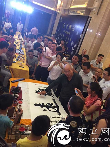 活动进行到这里还没有结束,以下的节目才是西马今天准备的重头戏。现场请到了中国书法协会朱永善,现场创作产品,陶卫网记者发现其作品大字浑厚沉雄,气势磅礴,力鼎千钧;小字灵秀飞动,潇洒飘逸,如云鹤游空。据了解,朱大师的书法平时可以卖到36000元一副的,今天只是是一千元起价。