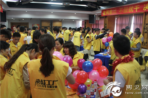 本次联动分为8个战区,实力相当的战区两两PK。在这场启动会中,他们要上台向对手放狠话、下战书,使得本次活动有了不少火药味,更加激发起大家的斗志。对对手“凶狠”,对自己也要狠点,每个战区都为自己订立的目标签下军令状,随后,李经理向所有战区依次授予火红的战旗,寓意着日后每个战区的业绩都将红红火火。