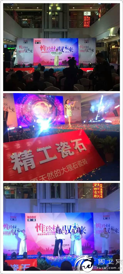 活动特别邀请了博德公司国际事业部副总经理、产品部总监魏继国现场对新品进行全面的在诠释。在他的发言中对博德公司产品技术研发及生产工艺各个关键环节为到场的嘉宾做了一次全方位的讲解。魏总说道:“博德公司2002年成立至今,一直在精工玉石产品、工艺效果上有着很深的研究。发展到现在,我们可以很自豪地和大家分享精工建材产品研发及研发方面的巨大成就!”他重点提到了博德2015年推出具有革命性意义的新产品——精工瓷石。这款震撼的新品不仅全球征集可追溯的石材元素,同时使用全球领先的釉料和墨水发色系统。他强调,精工瓷石采用的是目前国外某知名企业最先进的干粒及胶水套喷技术,博德也是国外某知名企业该项技术在中国大陆的第一家战略合作伙伴,从技术的源头保证了精工瓷石系列产品的优良性质。而针对精工瓷石产品表面硬度研发的重大突破,也是震惊行业的新跨越。