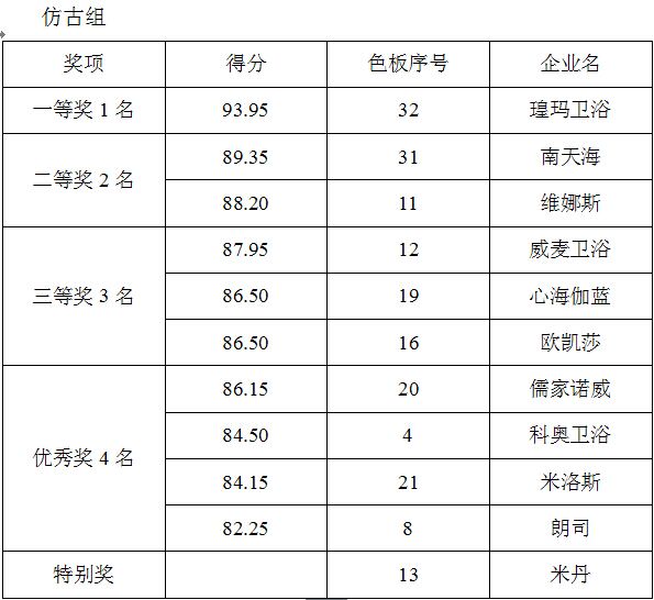 因仿古组报名企业较多,另设优秀奖四名各1000元(现金)。因现场评委评议仿古组增设特别奖1名