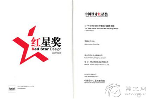 2015中国设计红星奖共有来自18个国家1566家企业的6025件产品参评。经过两轮评审,共有176家企业的289件产品获奖,其中至尊金奖1个,金奖8个,银奖10个。日丰卫浴的“定量快开龙头”在本次评选中获得红星奖银奖,也是日丰卫浴在历年红星奖评选中获奖级别最高的一次。
