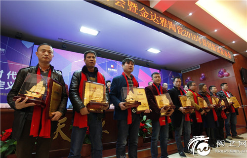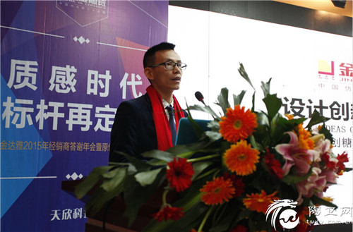 金达雅陶瓷创建于1999年,自成立起一直致力于设计、研发、生产高品质、高质量、具有绝对竞争力的仿古砖精品。湖南天欣科技股份有限公司常务副总经理,营销总经理黄戴荣在会上从金达雅品牌影响力提升、金达雅品牌标准化输出、新型服务营销工具等方面回顾了金达雅去年的工作,阐述了2016年服务营销、终端渠道等工作开展思路。