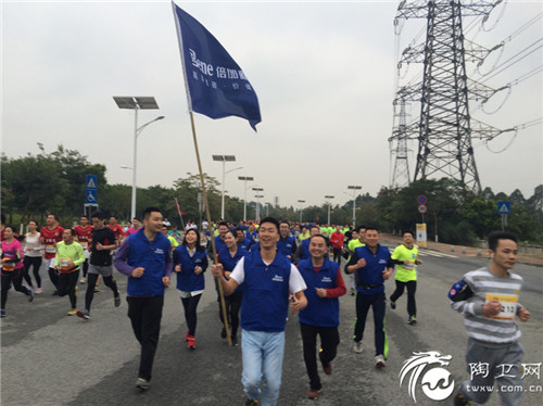 倍加新陶瓷队伍奔跑在马拉松队伍的最前端