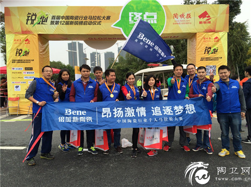 8点20分,随着发令枪一声枪响,倍加新陶瓷参赛员工奔跑的激情瞬间点燃,大家随着参赛的千人队伍,汇入奔腾起伏的人海中。在比赛过程中,倍加新陶瓷全体队员秉承“挑战自我,超越极限,坚韧不拔,永不放弃”的马拉松精神,呈现了最佳的精神面貌与团队协作精神,大家一路高举“Bene倍加新陶瓷”的旗帜,相互鼓励,齐头并进,在众多观众和志愿者的加油呐喊声中,最终全部完成了13.5公里的马拉松赛程。