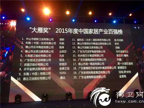 (浪鲸卫浴荣登“大雁奖”2015年度中国家居产业百强榜)