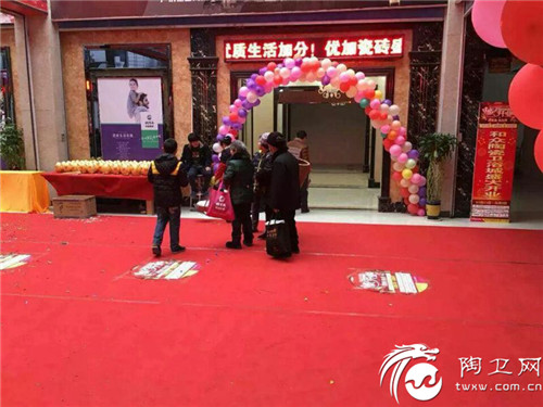 元月1日,新年伊始,位于秀山县的优加瓷砖旗舰店经过两个多月装修与精心筹备盛装开业了。开业现场礼炮齐鸣、彩旗飘扬,庆典现场一派浓浓喜庆氛围,红色拱门喜气逼人,恭贺花篮分列大门两侧,排成两条长龙。展厅内的彩色气球、吊旗、彩带、海报等装饰品更是烘托出活动现场的火热气氛。