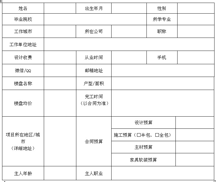 十间坊实战参赛设计师报名表