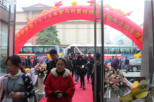 陶卫网讯 2016年1月15日-17日,以“创势聚力 领航2016”为主题的罗马利奥磁砖2016年全国经销商年会在佛山召开。广东冠星陶瓷企业董事总经理何友和,广东冠星陶瓷企业董事副总经理廖辉年,广东冠星陶瓷企业营销总经理王贵苏等公司高层领导和公司管理层,以及来自全国各地的600多名罗马利奥磁砖经销商精英、战略合作伙伴齐聚一堂,回顾并总结了罗马利奥磁砖在2015年度的品牌发展成就,并对2016年的整体工作进行战略布局。年会同期,罗马利奥磁砖发布并展示了2016年全系列新产品。经销商们在罗马利奥磁砖总部展厅进行参观,对新产品频频竖起大拇指,不乏经销商现场订货。那么,跟随陶卫网小编一睹罗马利奥磁砖2016年新产品的风采吧~