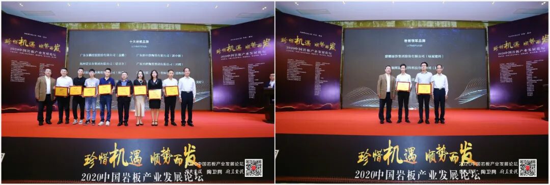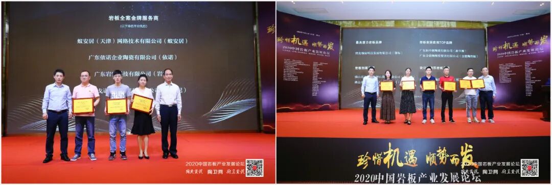论坛最后,主办方现场还表彰了一批为岩板行业做出积极贡献的个人及优秀的品牌。他们分别是: