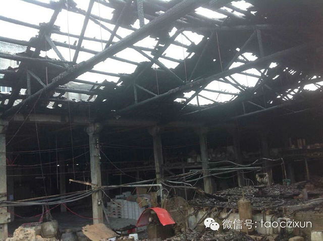 据了解,起火建筑为洁具厂,砖混、铁硼结构,共一层。火灾发生在第一层,厂房总面积为4000平方米,现场过火面积约为2000平方米。该厂东南面为道路,西南面是农田,北面是空地,而现场烧毁的物品为木竹桶,现场无坍塌等次生灾害危险,也未有危及周边民居,目前暂无人员伤亡报告。