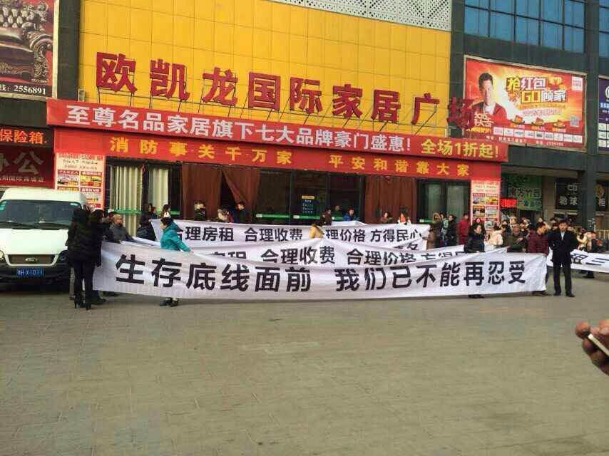 陶卫网讯 记者吴旭报道 1月17日,据陶卫网读者向记者透露,河南焦作市欧凯龙家居商场发生商户集体拉横幅抗议卖场涨价事件。