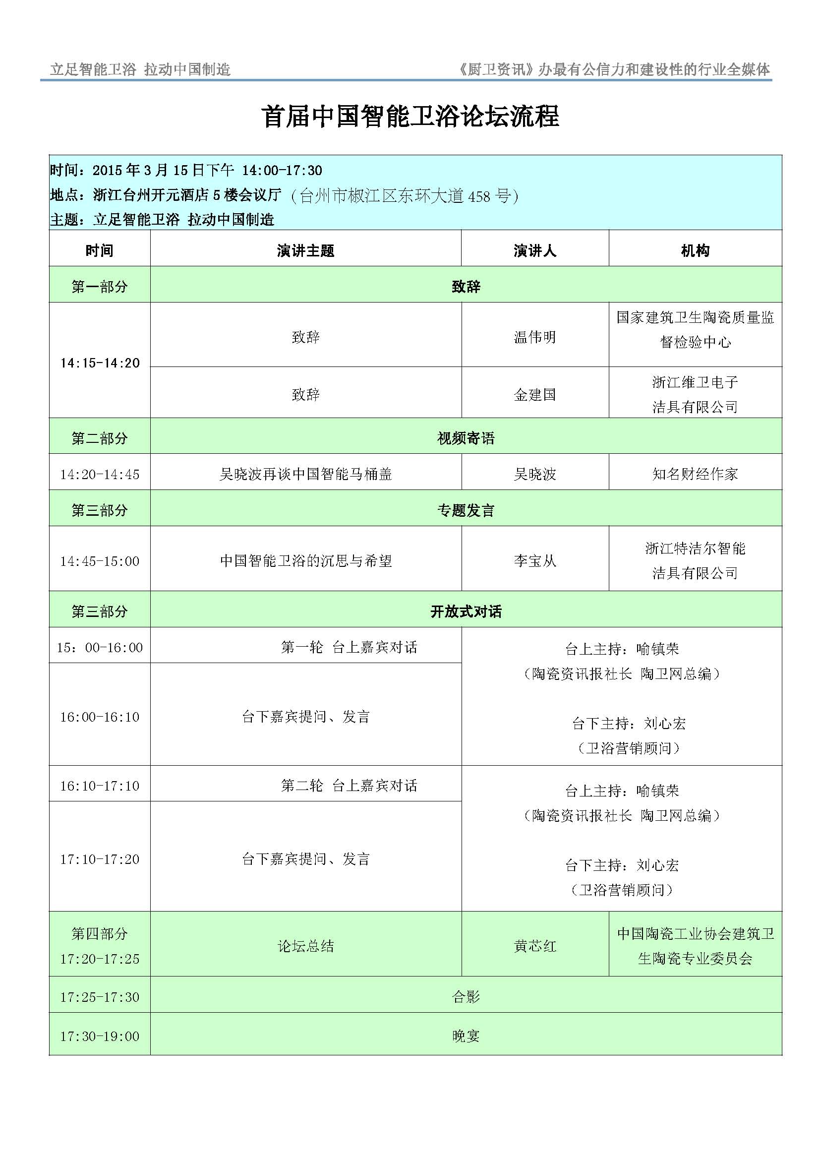 首届中国智能卫浴论坛流程