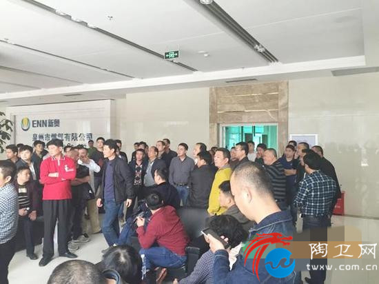 30日上午,晋江、南安两地百余家企业主和当地陶瓷协会、商会人士,在泉州新奥燃气公司大楼门口拉起横幅,提诉求讨说法。